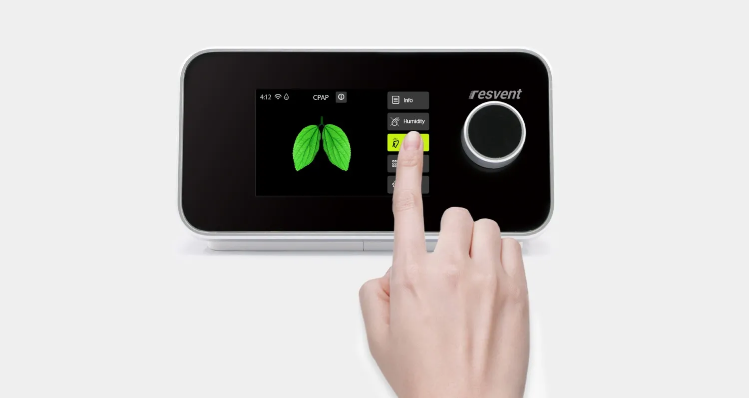 El iBreeze CPAP automático de Resvent ofrece terapia de presión positiva para tratar la apnea obstructiva del sueño (OSA). Equipado con sensores inteligentes, ajusta automáticamente la presión según las necesidades del usuario durante el sueño. Incluye un humidificador integrado con 8 niveles de humedad y capacidades de gestión remota a través de la plataforma ResAssist™.